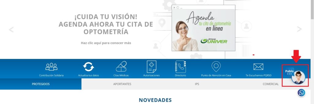 - Ingresa al enlace: Salud Total EPS; haz clic en el logo "Pablo"