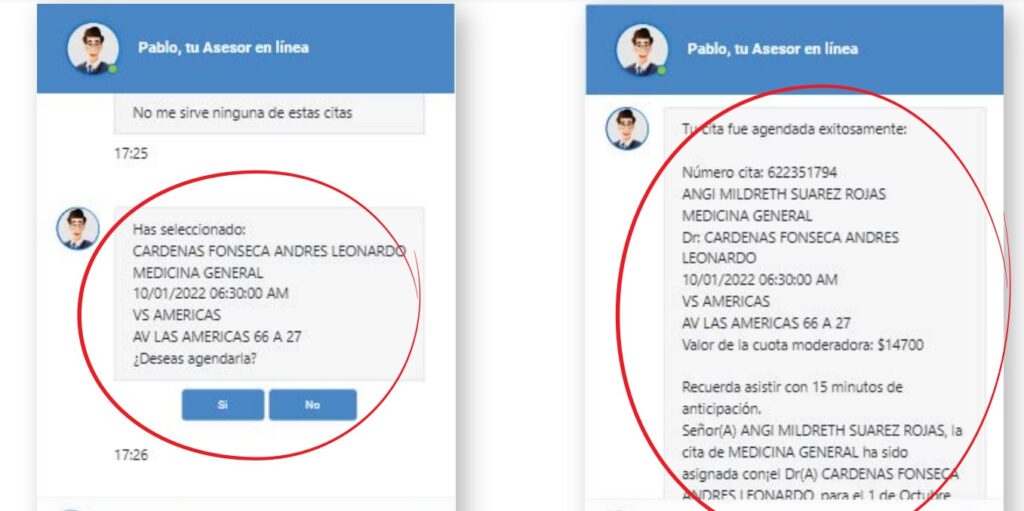 - Así de fácil puede agendar una cita por medio de "Pablo asesor en línea".